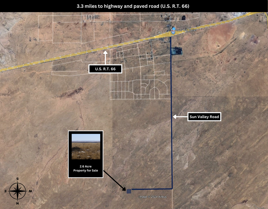 The closest paved road is 3.3 miles away from the property.