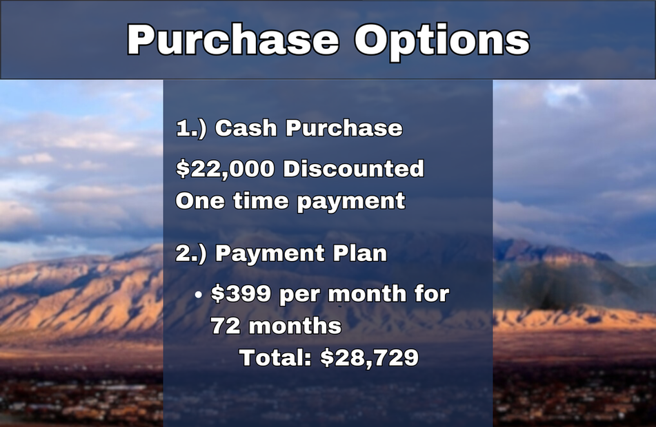 The best part? You don’t have to wait until the property is fully paid off to start enjoying it. As soon you’ve made your down payment and the paperwork is completed, you’re free to start using your new property right away. Congratulations, that’s it!