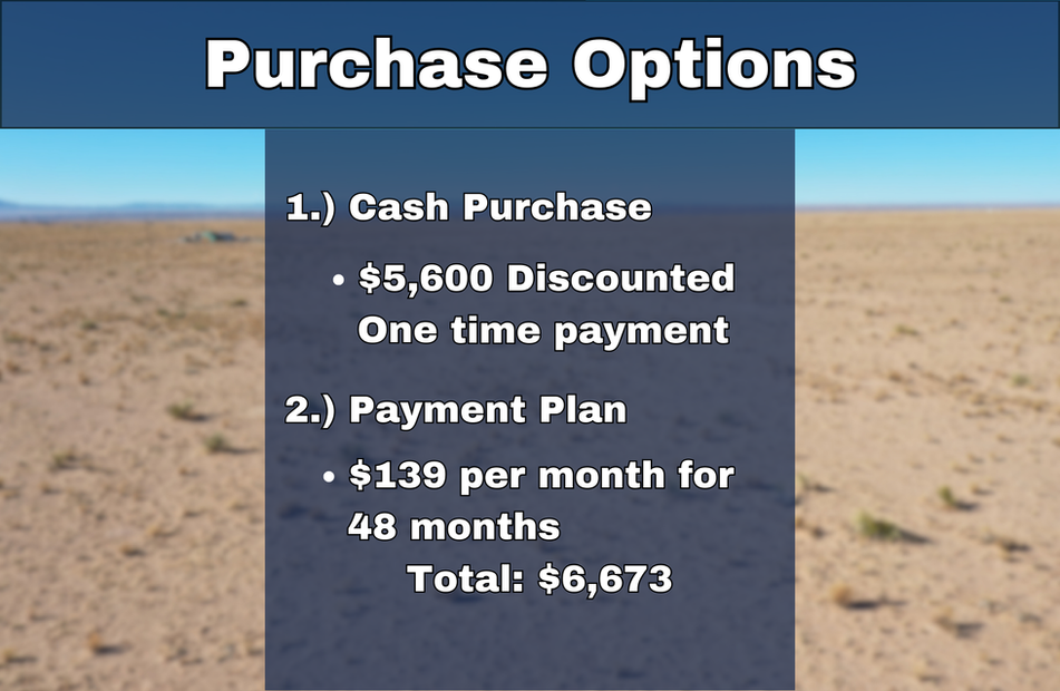 Your land-buying journey begins with a simple down payment of $139. With a term length of 48 months, you have the flexibility to choose your preferred due date each month for your payments. We aim to make the process of buying your dream property quick, stress-free, and easy.